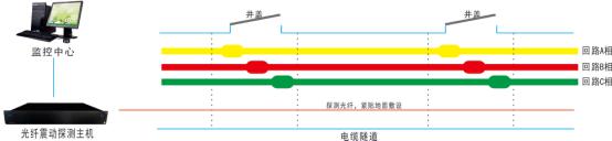 电缆隧道属于地下隐蔽设备,常常由于市政建设需要,大型机械会在电缆隧道周边持续、频繁的施工,对电缆隧道结构造成极大的影响,严重时还会导导致地表坍塌等重大事故。针对第三方破坏导致电缆隧道结构损坏的现象,可通过电缆隧道防外破监测系统对地下设施周边一定范围内的土壤振动信息进行连续监测和分析,从而实现地下电缆隧道安全预警,有效防止第三方破坏。