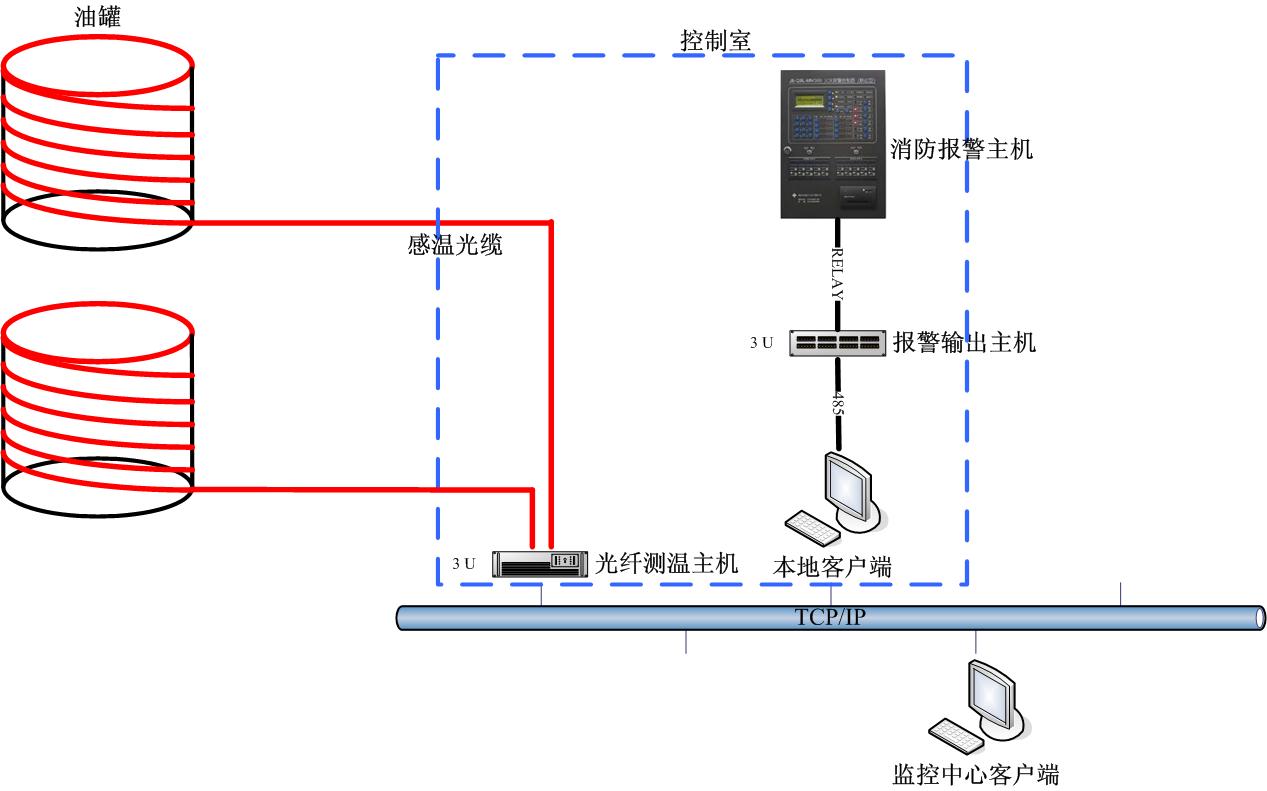 迅捷光通科技有限公司适时地开发出线型光纤感温火灾探测系统,实时对油罐进行温度监测,并进行预警和报警,将火灾消灭在萌芽阶段。传统测温方式采用的是电信号测量,容易带来不安全因素;该系统采用了全光纤传感无源测温方式,消除了监测系统自身的安全隐患,极大提高了监测系统对油罐温度监测的可用性。