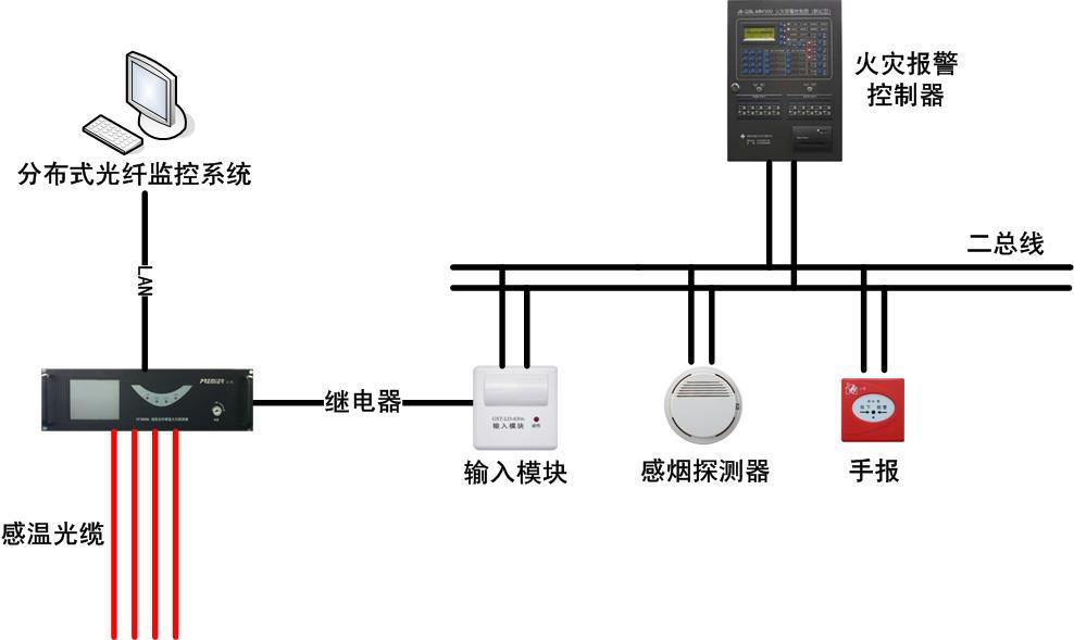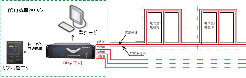 为此,迅捷光通科技有限公司适时地开发出线型光纤感温火灾探测系统,实时对电缆进行温度监测,并进行预警和报警。该系统采用了全光纤传感无源测温方式,消除了监测系统自身的安全隐患,极大提高了监测系统对电力温度监测的可用性。该光纤测温系统被很多煤矿、电厂、大型厂矿和供电公司使用,大大降低了火灾事故的发生,真正地做到防患于未然,符合电力行业“安全第一,预防为主”的安全思想。