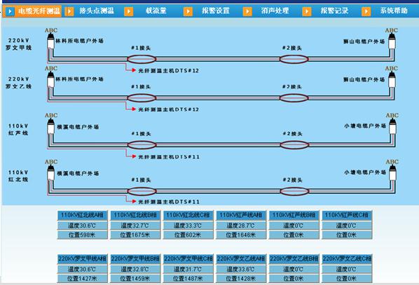 Ampacity电力电缆载流量分析软件系统用于准确实时计算出监测区域内所有回路的电缆导体温度和短时使用电流,提供完整的电缆负荷安全监测的解决方案。Ampacity电力电缆载流量分析软件系统实时从分布式光纤测温系统获取温度数据,并采集回路电缆状态实时数据作为分析基础数据。Ampacity电力电缆载流量分析软件系统基于IEC60287标准实现动态载流量计算,系统局部界面集成了整条电缆表面温度曲线显示,发现异常情况则向报警设备发送报警指令(根据用户需要将报警信息发送给指定用户)。